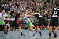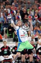 Gasper Marguc in action during Euro 2018 Qualifyers handball match between Slovenia and Germany in SRC Stozice, Ljubljana, Slovenia on May 3,2017