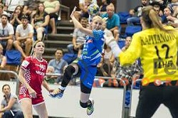 Elizabeth Omoregie in action during Handball match Krim - Ioventa Mihalovce, EHF Champions league qualifying, Kodeljevo, Ljubljana, Slovenia, 10.09.2016