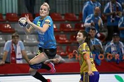 action during Women's EHF Champions League match between Krim Mercator (SLO) and Vistal Gdynia (POL) in Kodeljevo Hall, Ljubljana on November 4, 2017