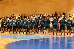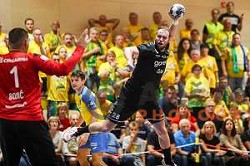 in action during Slovenian handball Supercup match between Gorenje Velenje and Celje Pivovarna Lasko in Gornja Radgona, Slovenia on September 4, 2022
