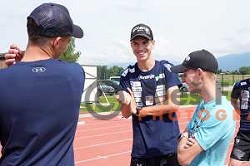 Lovro Kos of Slovenia Men's Ski jumping Team Summer during summer practice in Kranj, Slovenia on May 27, 2024