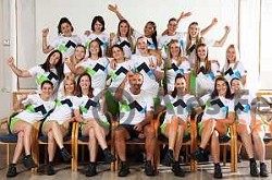 Kragelj Ursa (SLO), Eva Tercelj (SLO) and Ajda Novak (SLO) celebrating during European Senior Canoe Team slalom Championships in Tacen, Ljubljana, on June 2nd, 2017