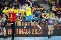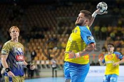 Tim Cokan in action during EHF Champions League handball match between Celje Pivovarna Lasko and Lomza Kielce in Zlatorog Arena, Celje, Slovenia on Oktober 27, 2022