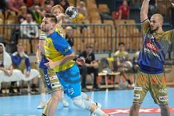in action during EHF Champions League handball match between Celje Pivovarna Lasko and Lomza Kielce in Zlatorog Arena, Celje, Slovenia on Oktober 27, 2022