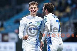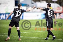 Zan Trontelj and Alexandros Kyziridis celebrating during Prva liga Telemach football match between Mura and Bravo Kostel in Fazanerija, Murska Sobota, Slovenia on March 13, 2024. Photo: Jure Banfi
