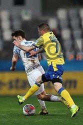 Tamar Svetlin and Enej Jelenic in action during Prva liga Telemach 2023/2024 football match between Koper and Celje in Koper, Slovenia on March 14, 2024