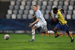 Mark Zabukovnik in action during Prva liga Telemach 2023/2024 football match between Koper and Celje in Koper, Slovenia on March 14, 2024