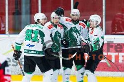 Maris Bicevskis in action during the third game of the Final of the Slovenian Ice-hockey League between SZ Olimpija and SIJ Acroni Jesenice in Tivoli Hall, Ljubljana, Slovenia on March 12, 2024