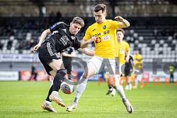 Zan Trontelj vs Matic Ivansek in action during Prva liga Telemach football match between Mura and Bravo Kostel in Fazanerija, Murska Sobota, Slovenia on March 13, 2024. Photo: Jure Banfi