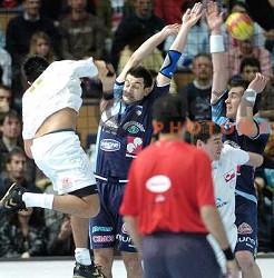 Denis Buntic and Bojan Skoko at the Final of the slovenian handball cup for men 2008 Gold Club - Cimos Koper at Zlatorog hall, Celje