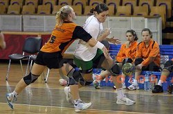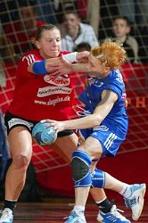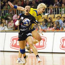 Olga Ceckova in action during handball match Krim Eta Malizia- Slagelse FH in Final of EHF Championsleague, played at Kodeljevo Hall, Ljubljana, Slovenia 22.5.2004. Slagelse FH won 36-32 and became a Champion