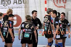 Time-out at quarter-final of Womens Championsleague Krim Mercator-Slagelse.Match was played in Ljubljana, Slovenia. Slagelse won 28:26 and advanced to semi-final.