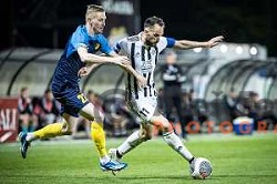 Zan Karnicnik vs Ziga Kous in action during Prva liga Telemach football match between Mura and Celje in Fazanerija, Murska Sobota, Slovenia on April 6, 2024. Photo: Jure Banfi
