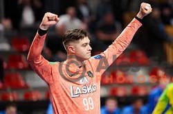 Gal Gabersek of RK Celje Pivovarna Lasko in action during Semifinal of Slovenian Handball Cup between MRK Krka and RK Celje Pivovarna Lasko in Ljubljana, Slovenia on April 4, 2025. Photo: Filip Barbalic