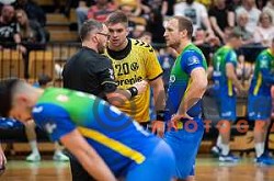 Zoran Jovicic in action during first 1.NLB league semi-final handball match between Celje Pivovarna Lasko and Gorenje Velenje in Celje, Slovenia on May 17, 2025.