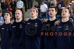 Skube, Kozomara, Miklavcic, Cehte,Skof at handball match Slovenia- Germany in Qualification for Euro 2010, played in Arena Zlatorog, Celje, Slovenia 2.11.2008. Germany won 27:26