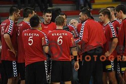 Klemen Cehte (blue shirt) at handball match Slovenia- Germany in Qualification for Euro 2010, played in Arena Zlatorog, Celje, Slovenia 2.11.2008. Germany won 27:26
