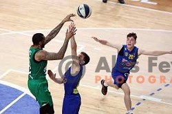Shawn Jones in action during semi-final of Nova KBM League between Cedevita Olimpija and Sencur GGD in Ljubljana, Slovenia on May 19, 2024