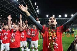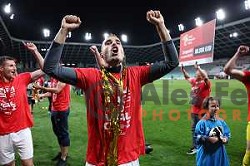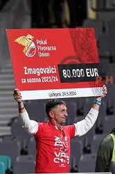 Patrik Mijic and players of Rogaska celebrate victory in the Final of Pivovarna Union Slovenian Cup 2023/2024 football match between Rogaska and Gorica in SRC Stozice, Ljubljana, Slovenia on May 24, 2024