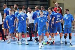 Urban Lesjak in action during preparation handball match for Paris 2024 Summer Olympic Games between Slovenia and Egypt in Arena Zlatorog, Celje on July 8, 2024