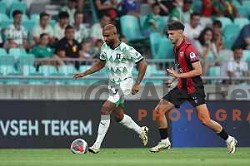 in action during first round of PLT 2024/2025 football match between Olimpija and Primorje in Ljubljana on July 19, 2024