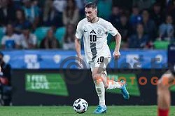 Andraz Sporar in action during UEFA Nations League football match between Slovenia and Austria in SRC Stozice, Ljubljana, Slovenia on September 6, 2024