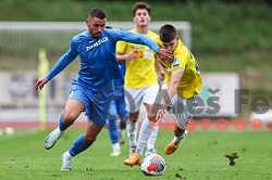 Dario Kolobaric and Gasper Jovan in action during Prva Liga Telemach 2024/25 football match between Bravo Kostel and Domzale in Ljubljana, Slovenia on September 15, 2024
