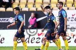Nino Kouter and players of Celje celebrate a goal during Prva Liga Telemach 2024/25 football match between Celje and Nafta 1903 in Celje, Slovenia on September 15, 2024