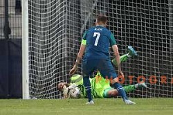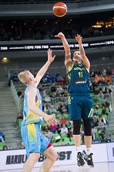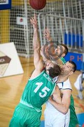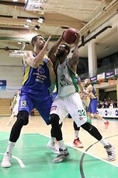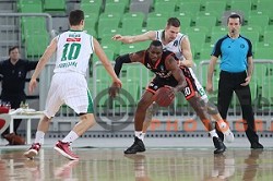 Devin Robinson in action during BKT EuroCup 2024/2025 basketball match between Cedevita Olimpija and Costa JL Bourg en Bresse in SRC Stozice, Ljubljana, Slovenia on November 6, 2024