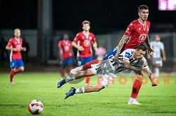 Aleksej Nikolic in action during BKT EuroCup 2024/2025 basketball match between Cedevita Olimpija and Costa JL Bourg en Bresse in SRC Stozice, Ljubljana, Slovenia on November 6, 2024