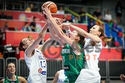 Sandra Pirsic of Slovenia in action during basketball match between Slovenia and Greece at European Women Basketball Championship 2017, played in Arena Kralovka, Prague, Czech Republic on June 17, 2017