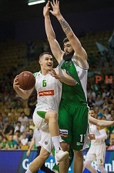 Aleksandar Lazic of Petrol Olimpija in action during FIBA Champions League basketball match between Petrol Olimpija and SIG Strasbourg in Stozice Hall, Ljubljana on October 9, 2018
