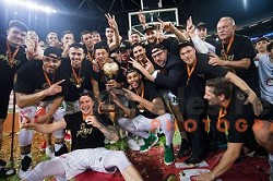 Olimpija in action during the Final of Nova KBM League basketball match between Petrol Olimpija and Krka, Arena Stozice, Ljubljana, Slovenia on May 29, 2018