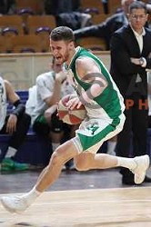Jan Barbaric in action during second match in the Final series of Nova KBM league basketball match between Union Olimpija and Rogaska in Ljubljana on May 19, 2017