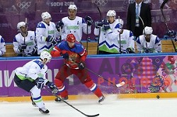 David Rodman of Slovenia in action during Preliminary round match Russia-Slovenia at Bolshoy Ice Dome, Sochi 2014 Winter Olympic games, Russia on February 13, 2014