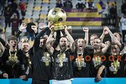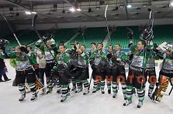 Players of Telemach Olimpija celebrate Slovenian National Title after beating team Jesenice 2:0 in Final series. Hala Tivoli, Ljubljana, Slovenia, April 3, 2014
