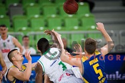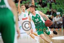 Jaka Blazic in action during BKT EuroCup 2024/2025 basketball match between Cedevita Olimpija and Costa JL Bourg en Bresse in SRC Stozice, Ljubljana, Slovenia on November 6, 2024
