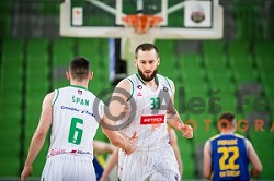 Jan Span, Aleksandar Radulovic in action during Nova KBM league quarter final basketball match between Petrol Olimpija - GGD Sencur, , Arena Stozice, Ljubljana, Slovenia on April 30, 2019
