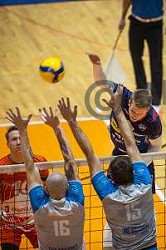 Rok Mozic in action during 1.DOL Volleyball league match between Merkur Maribor and Salonit Anhovo in Dvorana Tabor, Maribor, Slovenia on March 20, 2021
