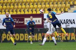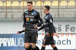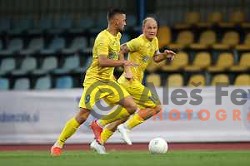 Andraz Zinic and Luka Susnjara in action during Prva Liga Telemach 2021-2022 football match between Domzale and Koper in Domzale, Slovenia on April 16, 2022