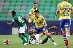 Simon Nsana in action during Prva Liga Telemach 2021-2022 football match between Kalcer Radomlje and Maribor in Domzale, Slovenia on February 21, 2022