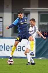 In action during Prva Liga Telemach football match between Olimpija and Koper in Ljubljana, Slovenia on August 15, 2021