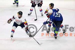 in action during IIHF Ice-hockey World Championship 2022 division I group A match between Slovenia and South Korea in Ljubljana, Slovenia on May 8, 2022