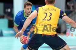 In action at Men’s Olympic Handball Tournament match between Slovenia and Sweden at Paris 2024 Summer Olympic Games, France on July 31, 2024