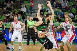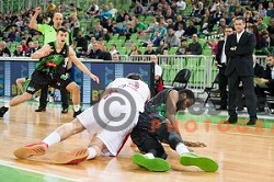Jan Mocnik of Helios Suns in action during first match of quarter-final of Telemach league between Union Olimpija and Helios Suns in Stozice Hall, Ljubljana, Slovenia on May 5, 2015