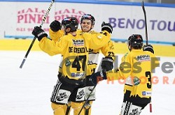 Lukas De Lorenzo Meo celebrates winning goal during Alps League ice-hockey match between SZ Olimpija and Pustertal in Ljubljana, Slovenia on December 1, 2020