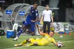 Antoine Makoumbou vs Enes Alic in action during Prva liga Telemach football match between Maribor and Domzale in Ljudski vrt, Maribor, Slovenia on July 25, 2021