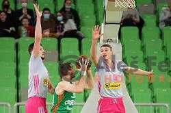 Dimitris Agravanis and Alen Omic of Cedevita Olimpija in action during 7days EuroCup regular season basketball match between Cedevita Olimpija and Promitheas in Stozice, Arena, Ljubljana, Slovenia on March 10, 2022
