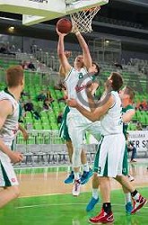 Devin Robinson in action during BKT EuroCup 2024/2025 basketball match between Cedevita Olimpija and Costa JL Bourg en Bresse in SRC Stozice, Ljubljana, Slovenia on November 6, 2024