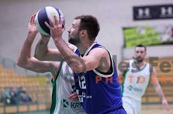 Head coach of Cosea JL Bourg en Bresse, Frederic Fauthoux and Djordje Adzic during BKT EuroCup 2024/2025 basketball match between Cedevita Olimpija and Costa JL Bourg en Bresse in SRC Stozice, Ljubljana, Slovenia on November 6, 2024